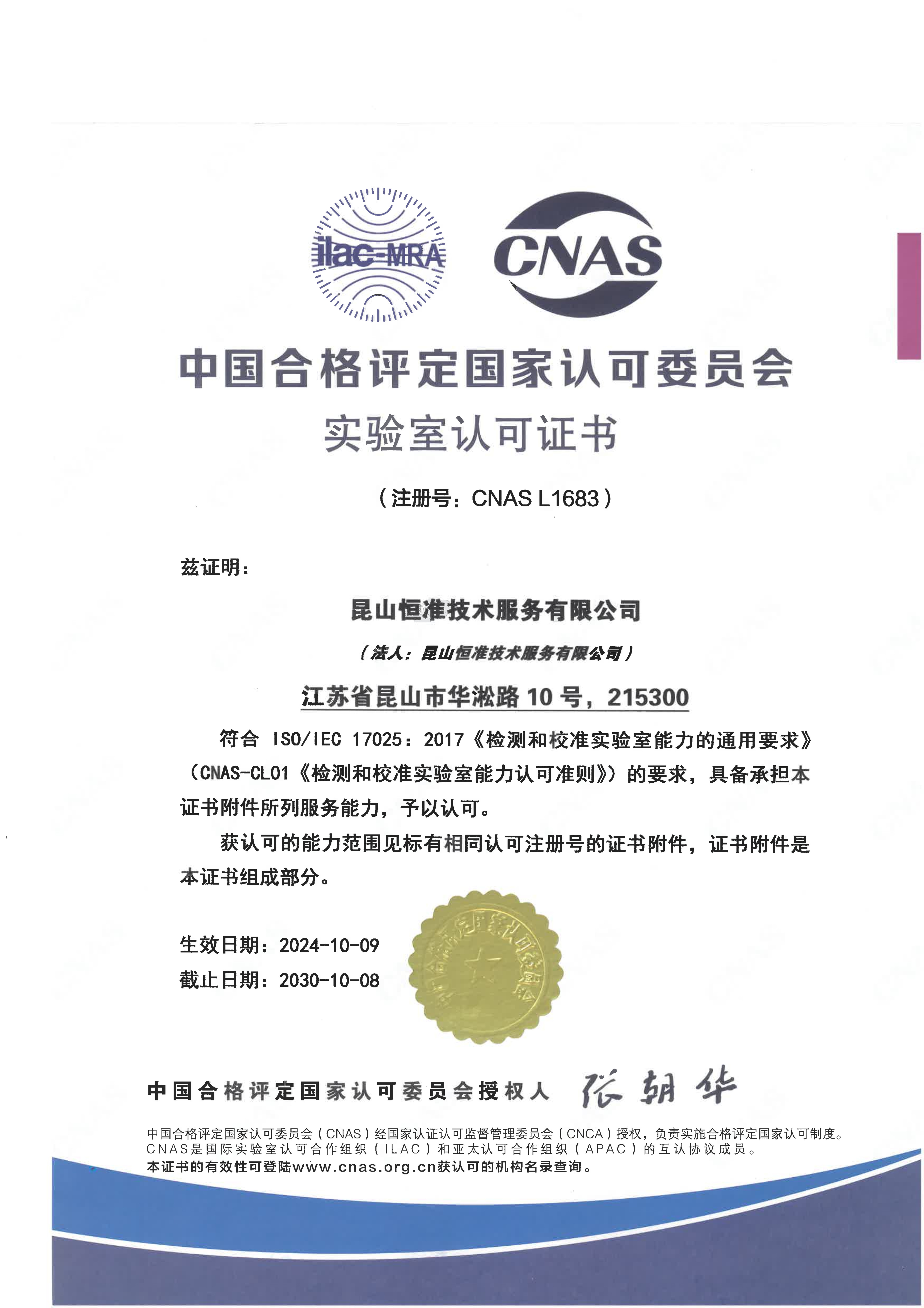 2003年08月,成立昆山恒準(zhǔn)技術(shù)服務(wù)有限公司,依據(jù)ISO17025要求建置